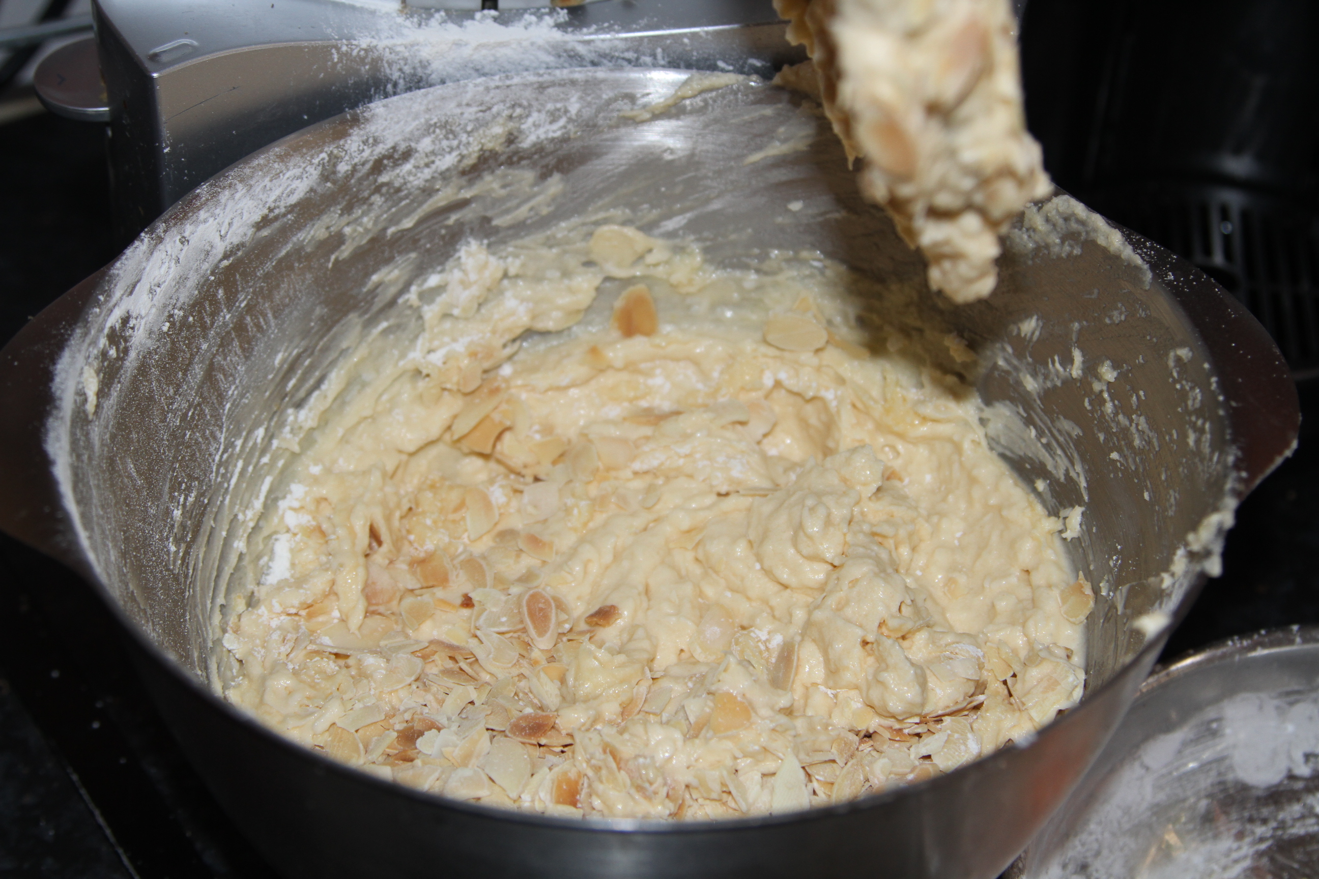 Masło z cukrem utrzeć na puch dodawać po jednym jajku ciągle mieszając, masa powinna być dobrze rozmieszana. Mąki przesiać przez sitko i dodawać po łyżce, mieszając. Na koniec dodajemy wiórki kokosowe i proszek do pieczenia, dobrze wymieszać.