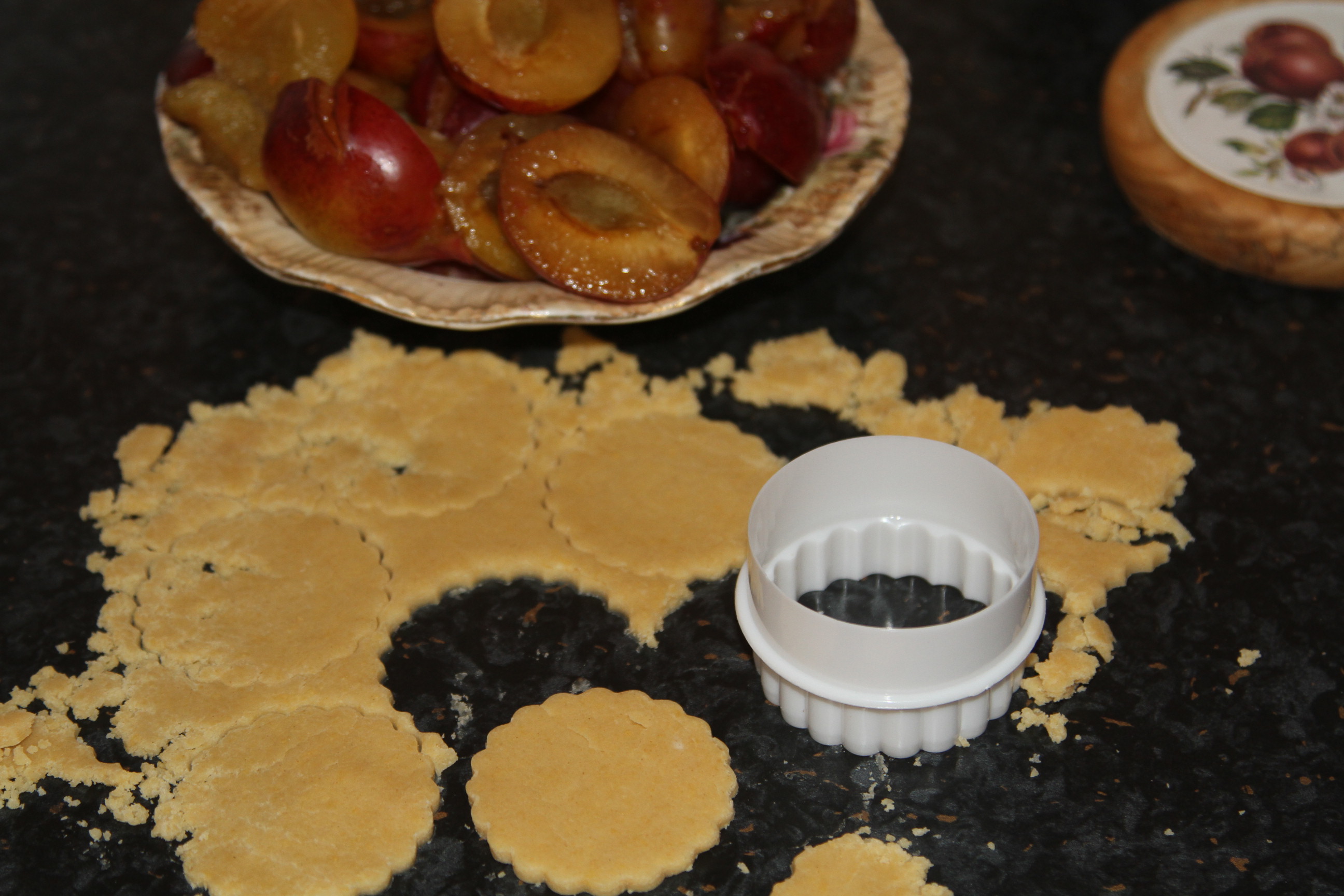 Dostałam dzisiaj śliwki, postanowiłam zrobić coś innego. Przeszukałam mój zeszyt i znalazłam przepis na ciasteczka. Najlepsze są węgierki, te starsze odmiany, są one bardziej ścisłe i nie mają tyle soku. Ja oczywiście mam inne, bo tu w Anglii nie widziałam naszych węgierek.