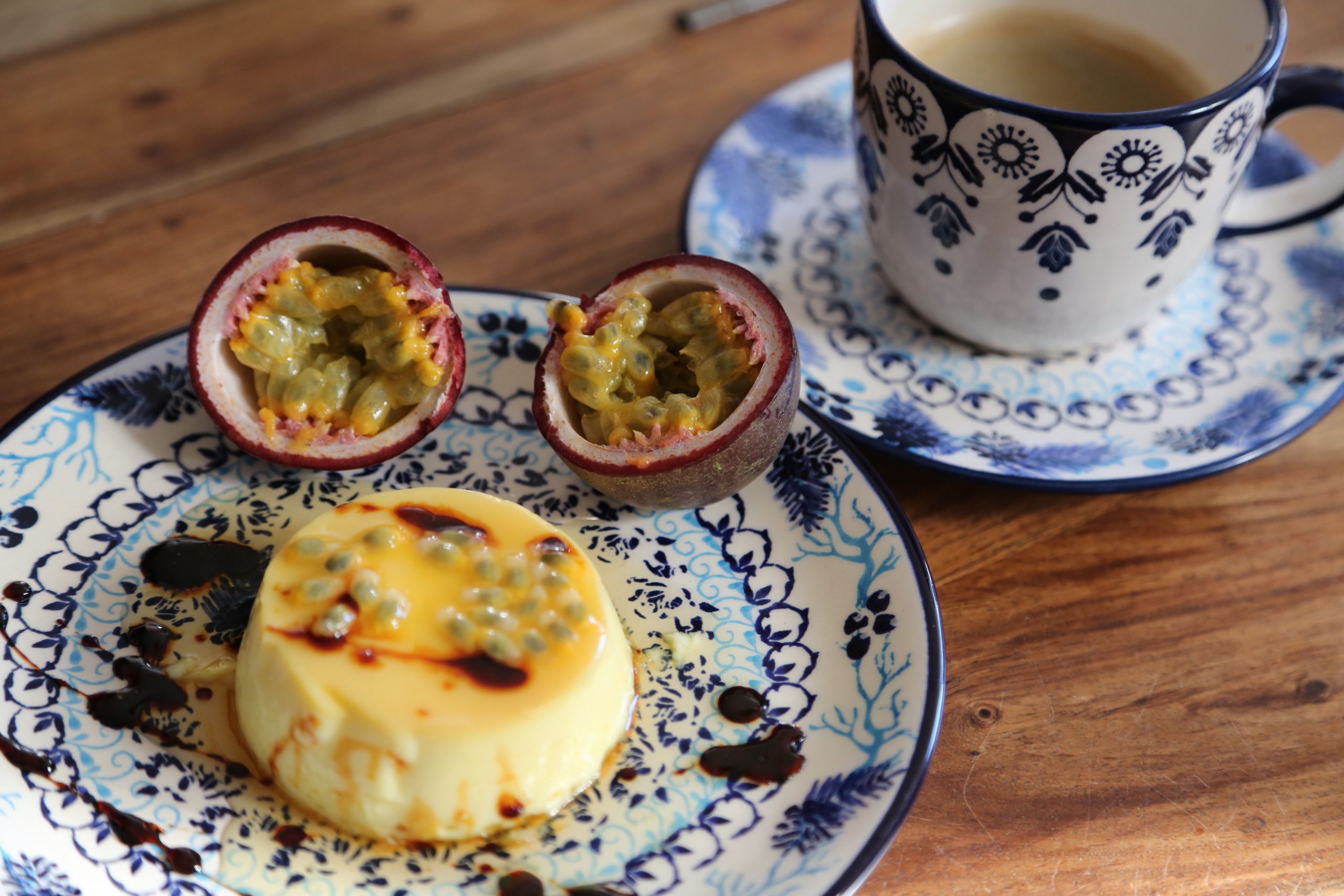 - Przed podaniem wyjmij krem z kokilek, odwróć na talerzyk, polej karmelowym sosem i udekoruj miąższem marakui.