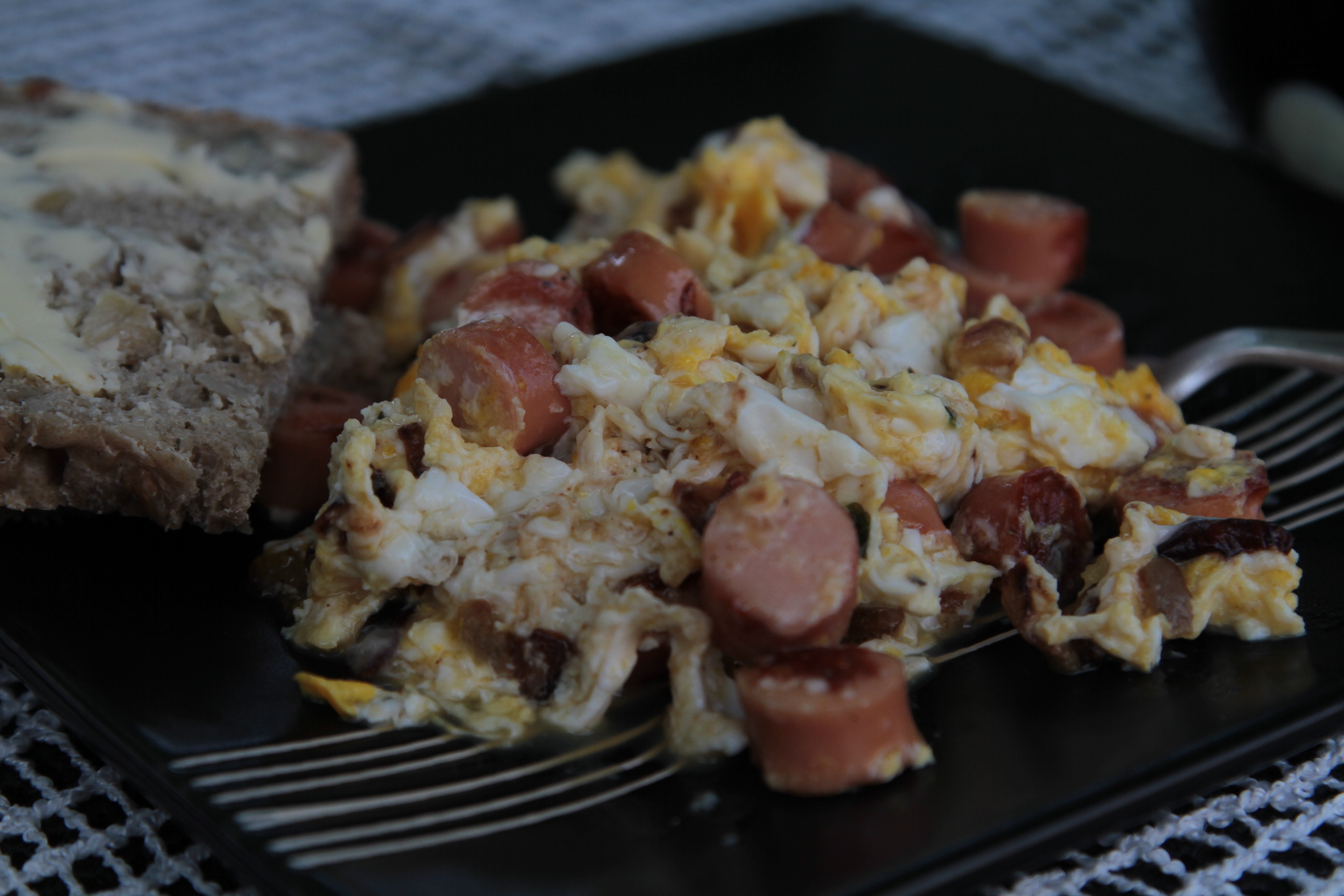 jajecznica z parówkami