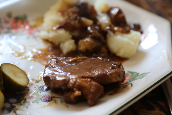 Podawać z ziemniakami lub kaszą. Mięso było pyszne, polecam.