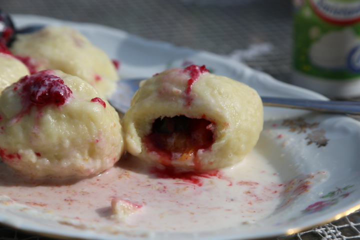 Wyjąć knedle i wyłożyć na talerz, polać słodką śmietaną i zajadać.