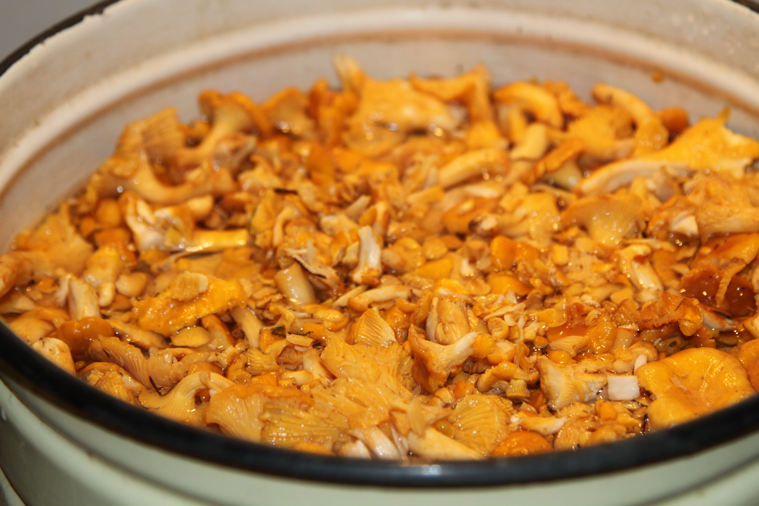 Przelać grzyby przez duże sito, wodę nie wylewamy!!! Do umytych słoików włożyć kurki i zalać wodą w której się gotowały, zamykamy słoik. Wody zawsze jest więcej, ja wlewam samą wodę do słoików i gotuję. Można tą wodę wykorzystać w różny sposób : dodając do sosów, do zupy pieczarkowej. Smak dania będzie dużo lepszy. Woda z takich kurek to cud.