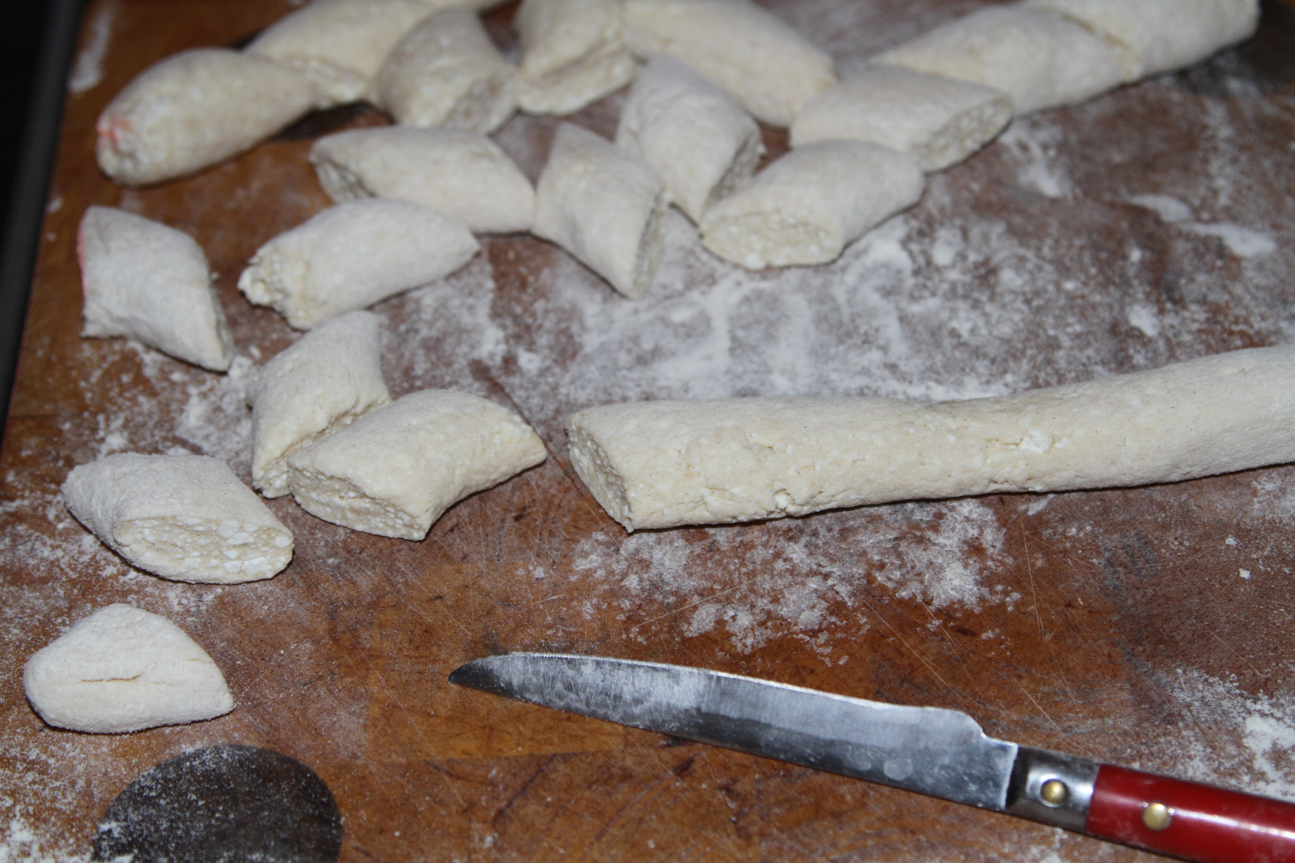 Formować cienkie wałeczki i pociąć je  na 2cm wałeczki.