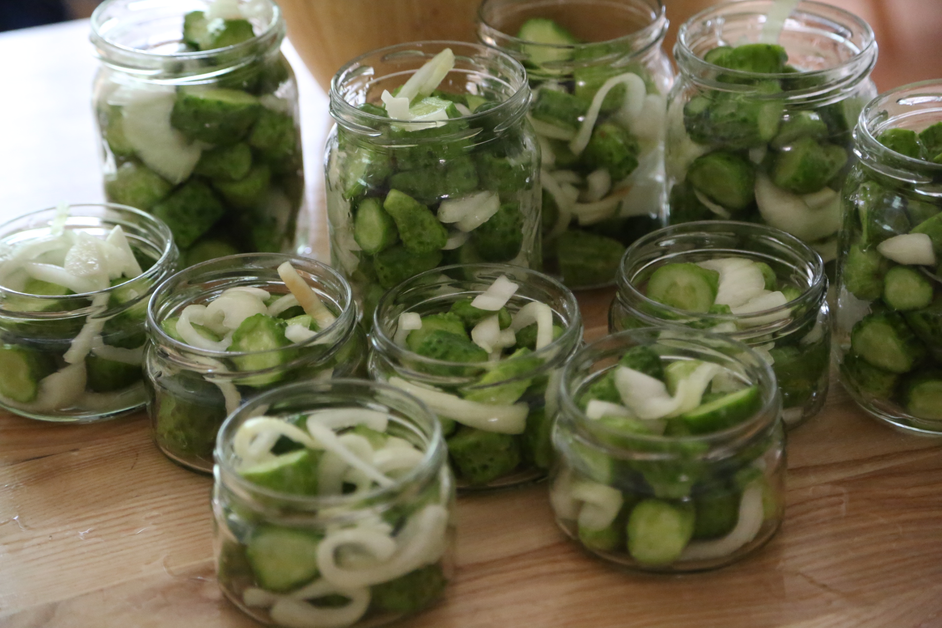 Zalewa – wszystkie składniki zalewy dodać do garnka i zagotować. Gorącą zalewą wlać do słoików. Gdyby zabrakło zalewy trzeba dorobić. Ilość zalewy zależy jak mocno napełnisz słoiki warzywami lub jakich słoików użyjesz.