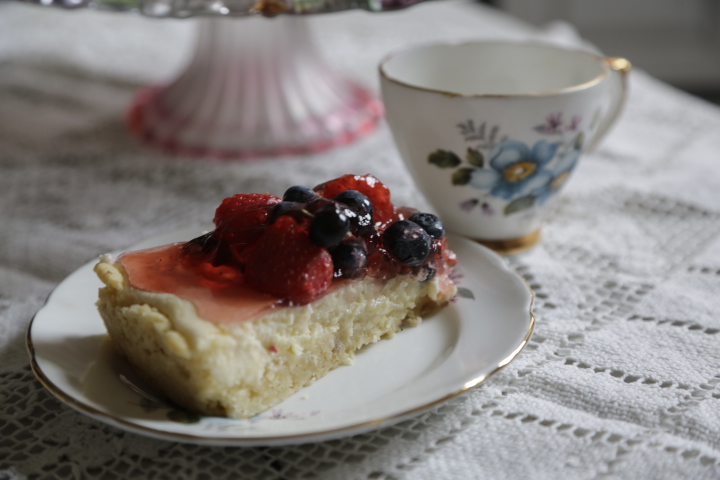- wylać masę na podpieczone ciasto