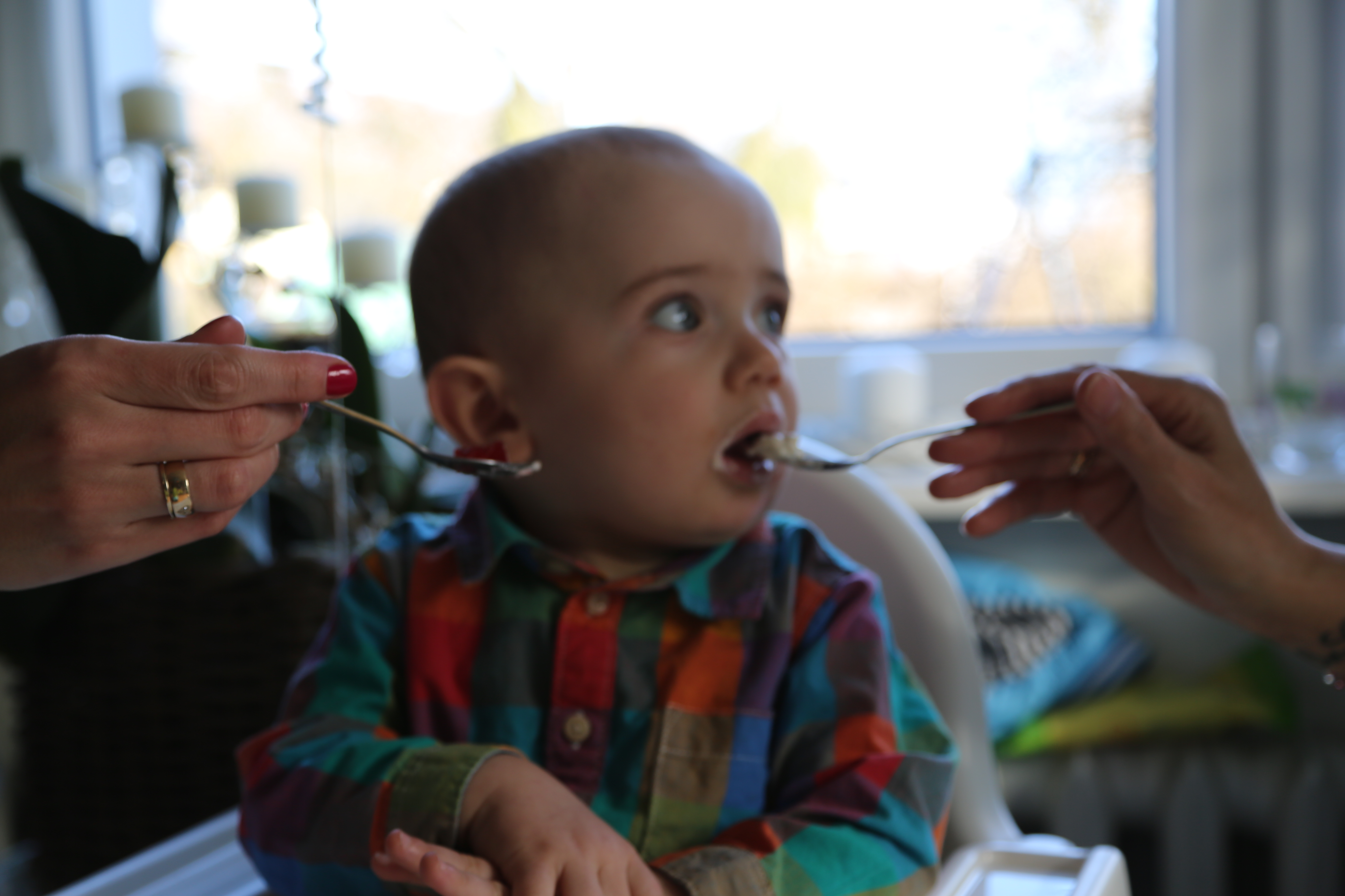 Tak mu smakował, że musiał być karmiony na dwie ręce 🙂