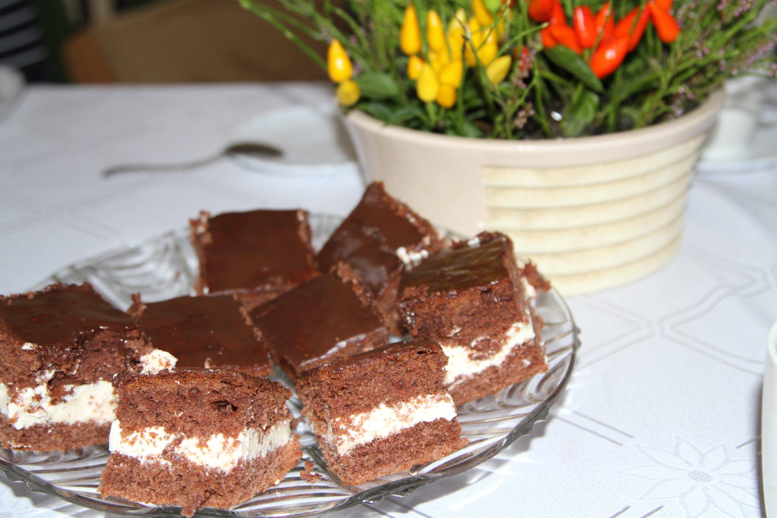 Bardzo dobre ciasto, jadłam je u kuzynki. Delikatne, mokre ciasto kakaowe z kwaskowatym kremem śmietanowym. Przepyszne 😉